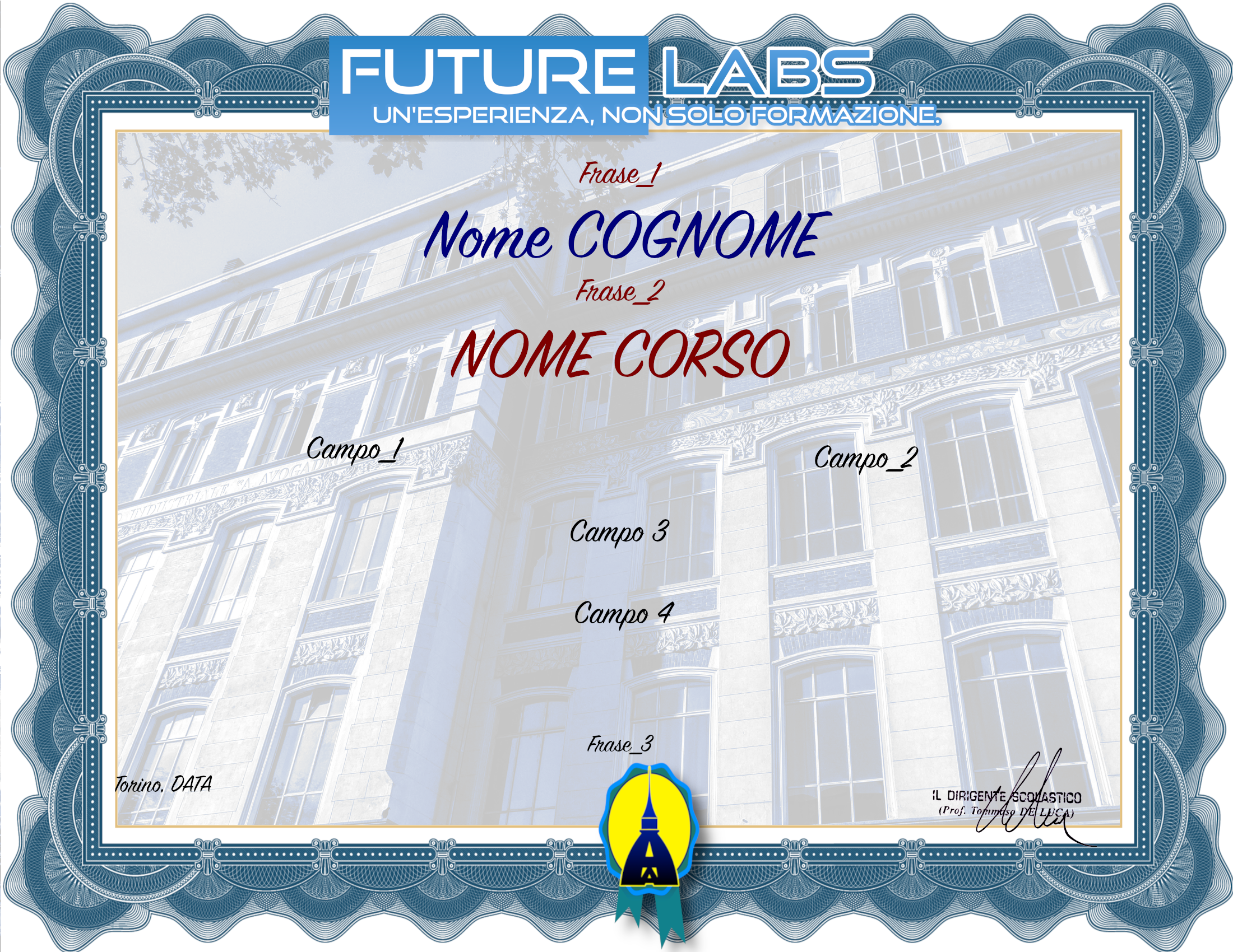 Posizionamenti dei campi durante la creazione degli attestati.